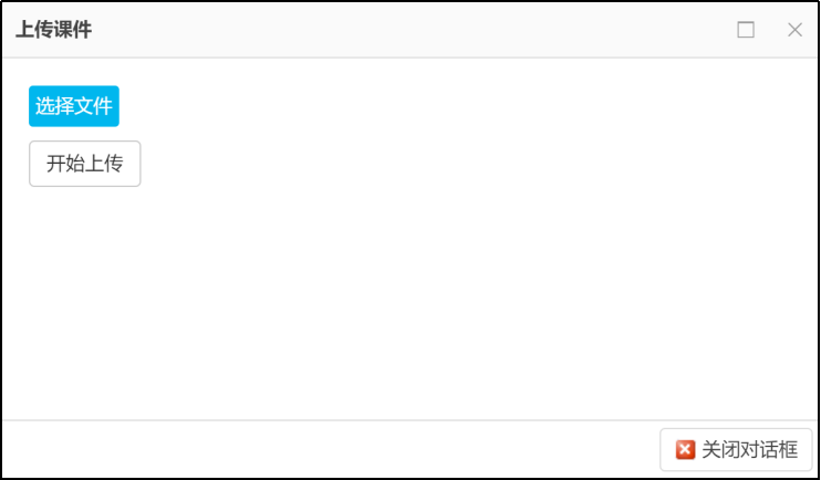 点击左侧菜单中的“2、上传作品”,即可打开上传作品管理页面,如图3-1所示。请阅读作品上传的相关说明。课件上传,点击操作面板中的“课件上传”按钮,即可打开课件上传窗口(如图3-2所示),点击选择文件,选择本地需要上传的文件后,点击上传,等待系统弹出“上传成功”提示,即可完成课件上传。教学设计上传和视频上传操作与课件上传类似,不再赘述。